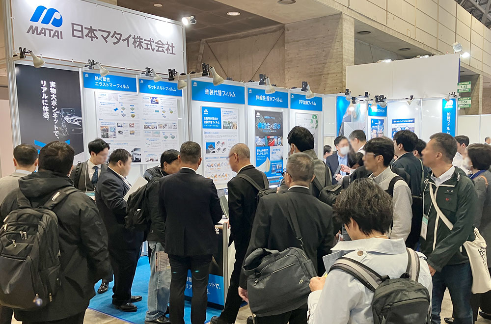 本展示では、伸縮性撥水フィルムや塗装代替フィルム、PP加飾フィルムなどの高機能樹脂フィルムに加え、生分解性素材やモノマテリアル包材などの環境配慮型製品、さらにコンパウンドや成形技術といった新領域の取り組みにも多くの関心をお寄せいただきました。
