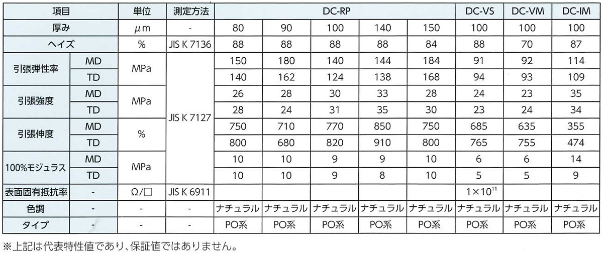 - 物性・製品規格表※1
